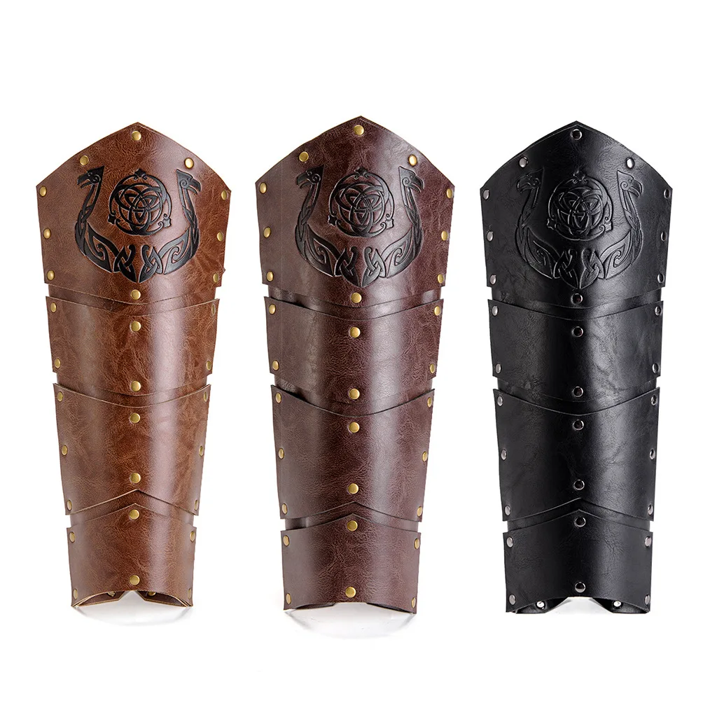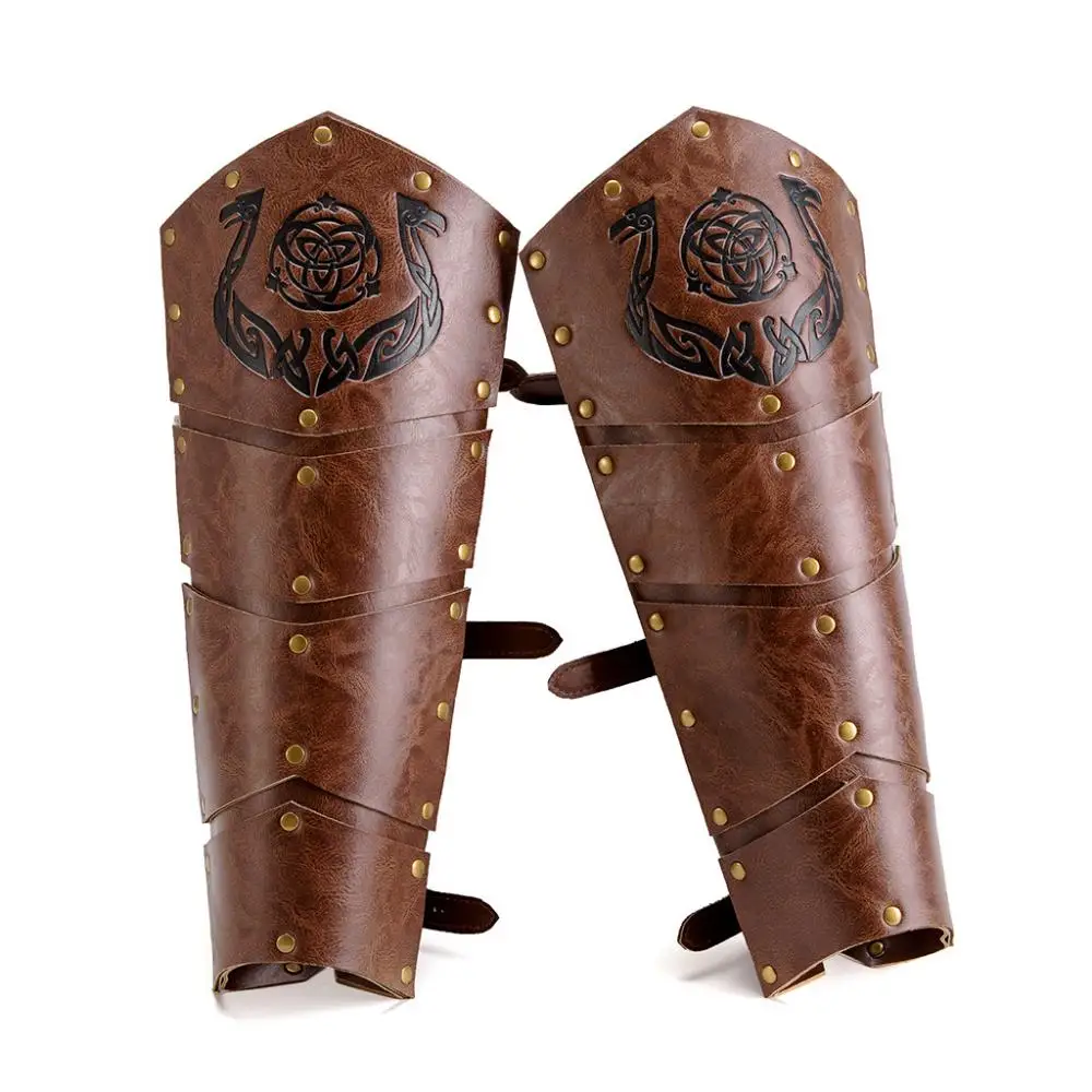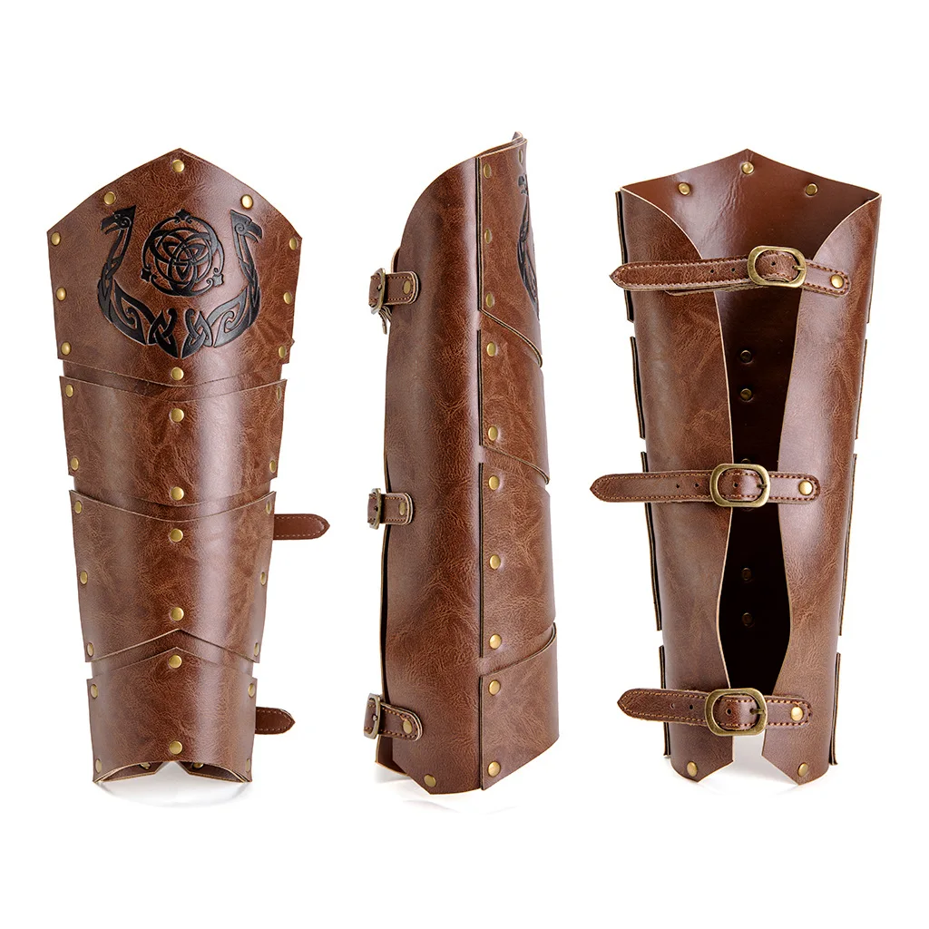 Item: 1 Pair Leg Armor Medieval Embossed Rivets Riding Boot Covers Adjustable Viking Cosplay Larp Historical Reenactment