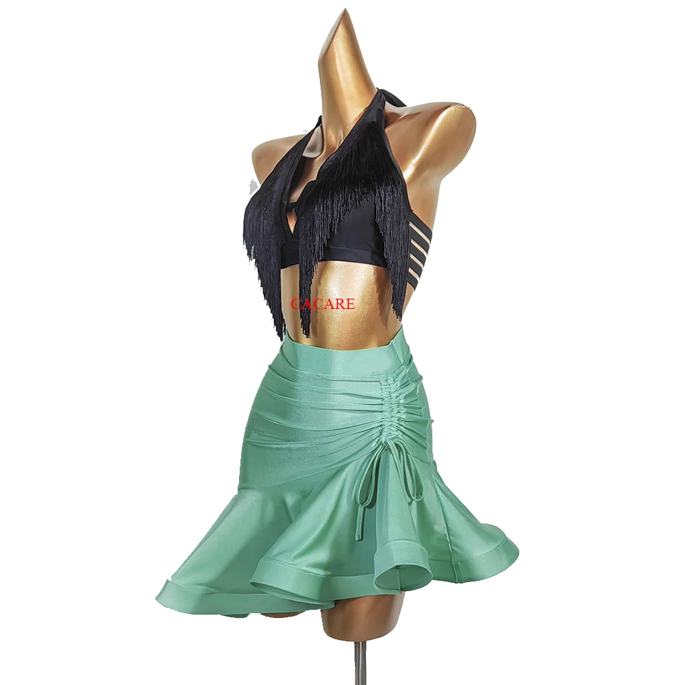 CACARE Lace Latin Dance Skirt Dance Dress Wear Exquisite Quality D0325 Black Blue Green Wine Red Colors Ruffled Irregular Hem