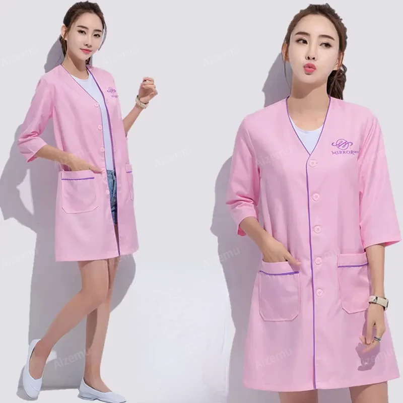 Be the first to review “Black short beauty uniform dress spa uniform scrub uniform white plus size Salon grooming clothes Lab coat logo Beautician tops”