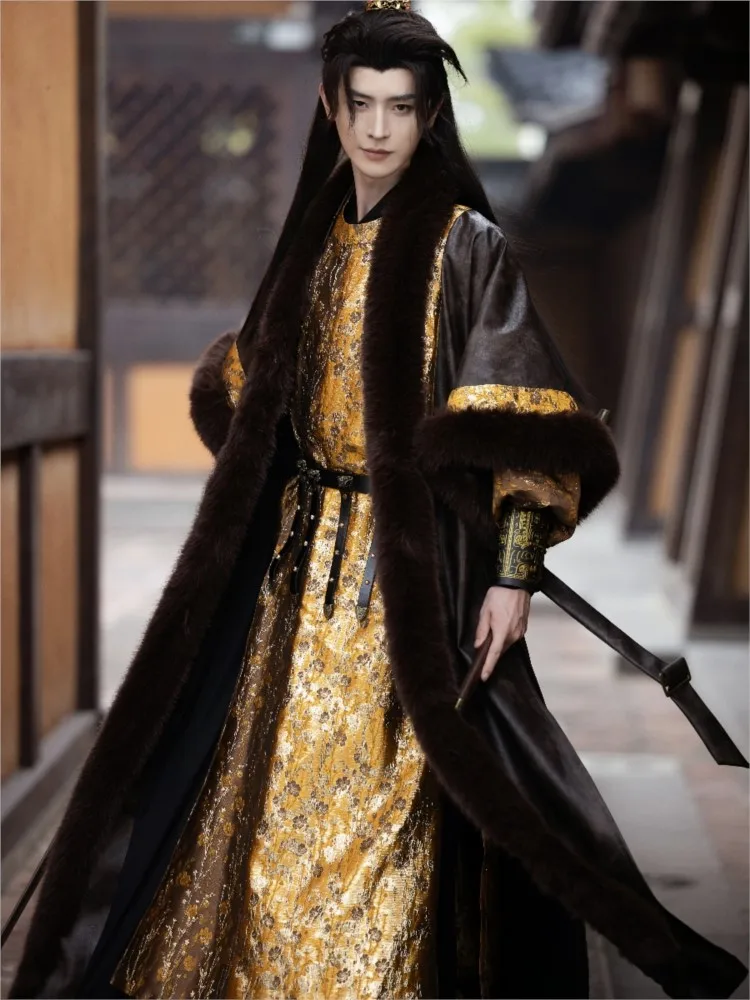 Be the first to review “Chinese-style round-neck fur coat Chu Yunling leather gold woven thin velvet Hanfu”
