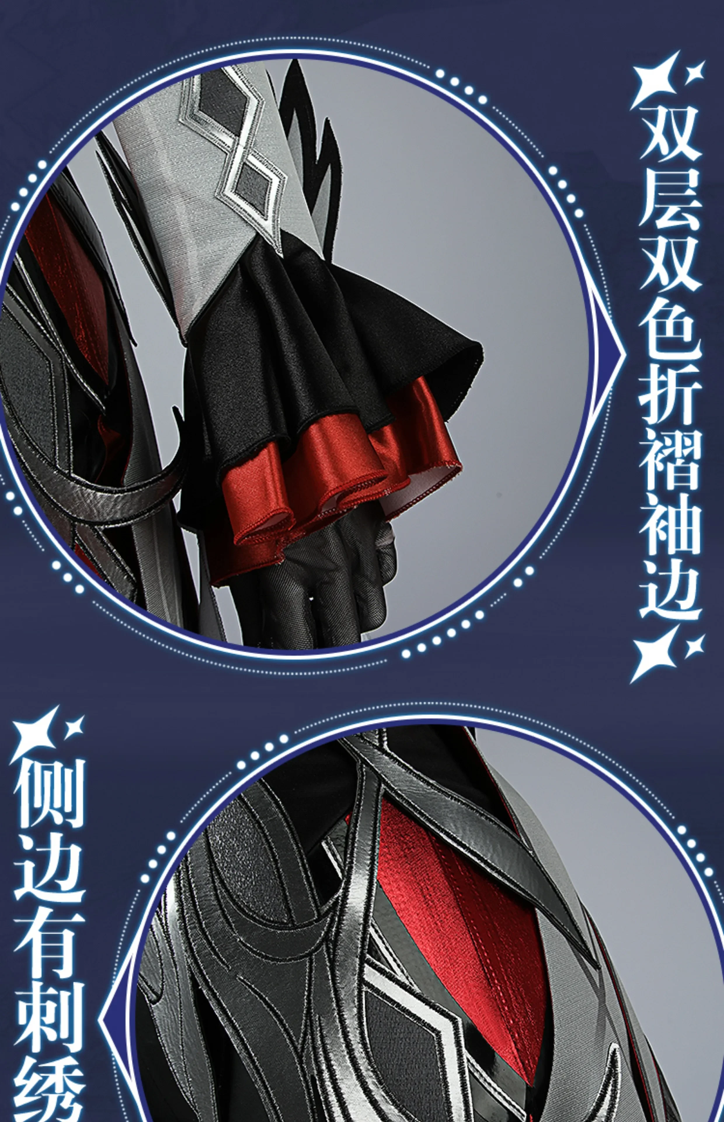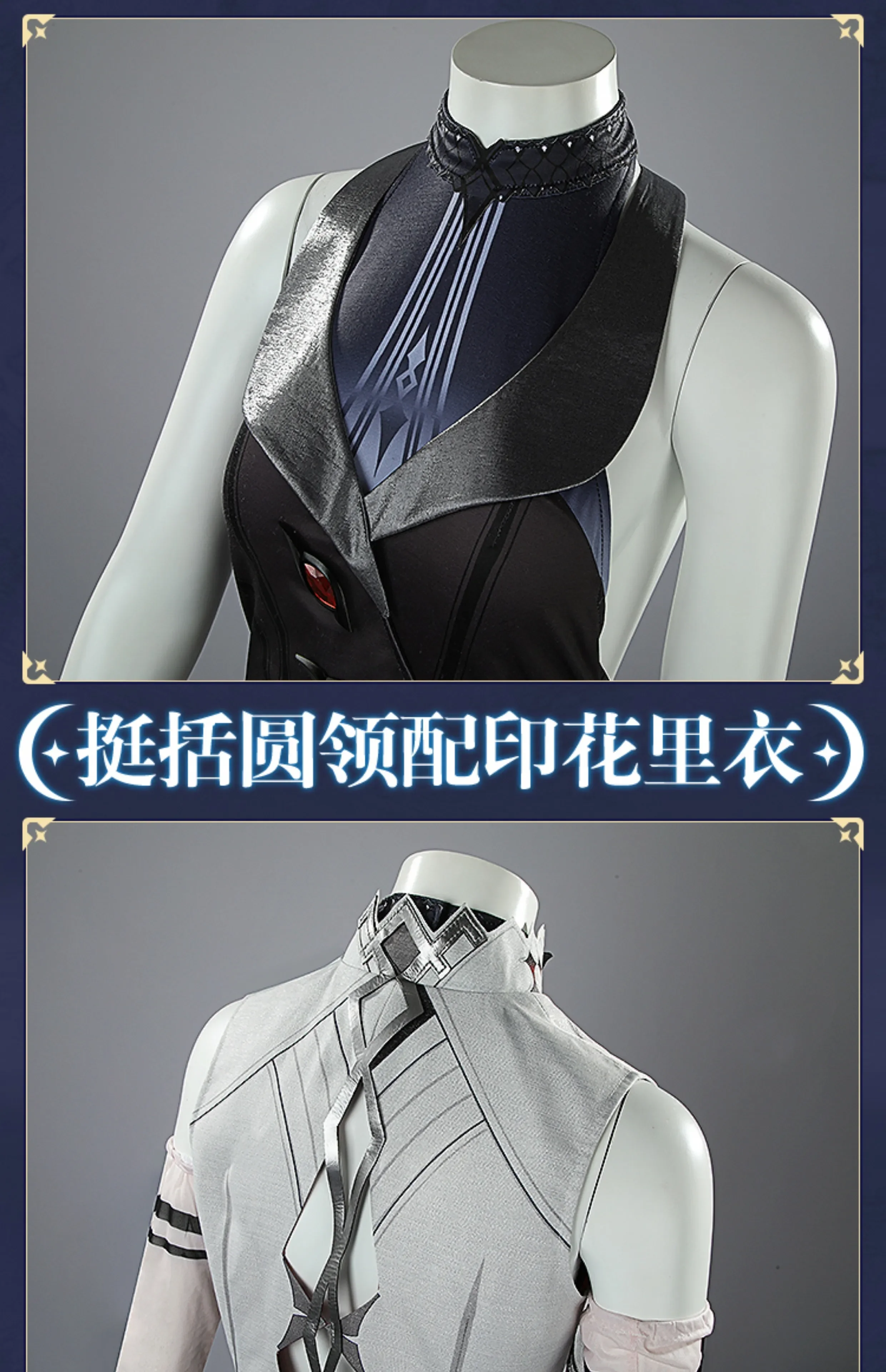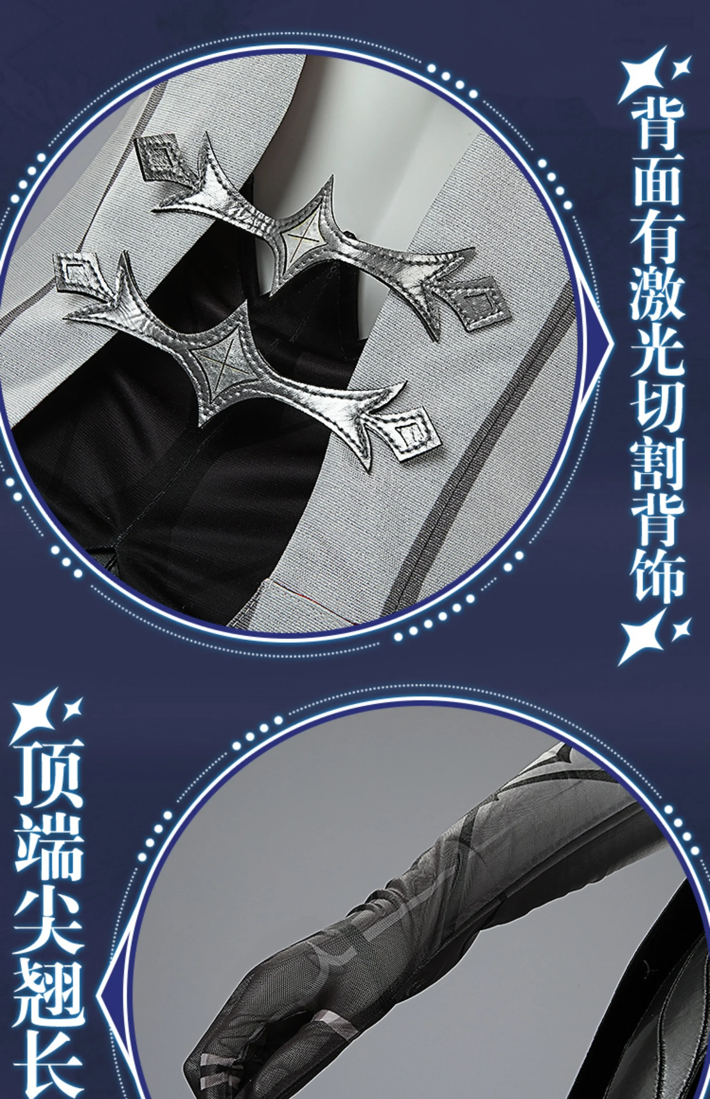 Costume Include:Jumpsuit+vest+fake collar+coat+leg cover *2+ evil eye+collar clip+collar ornament+wrist ornament *2+ cuff *2+ a pair of gloves.