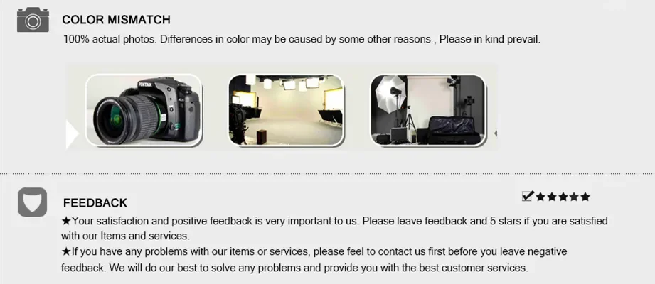 Quality problems: If the product you received have quality issues, please contact us and send us the product photos; After we check the photos, if there are quality problems, we will give your partly refund as a compensation or you can return it and get full refund. (Ps: Return shipping fee will be paid by yourself.^^)
