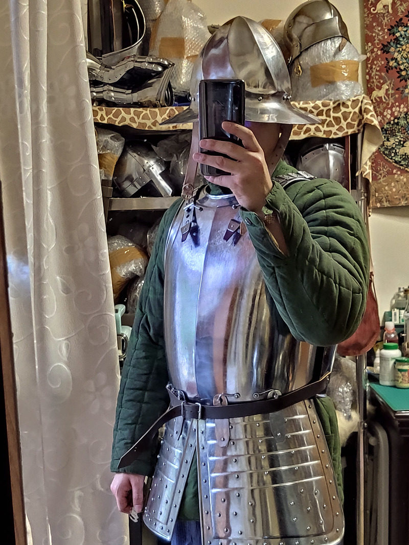 Paired with the morion (Morient helmet), it is suitable for the 17th century Pikeman (buffman) with two thigh guards that can be removed. (See photo display) After disassembly, the 17th century cavalry helmet in the store can also be used with late cavalry.