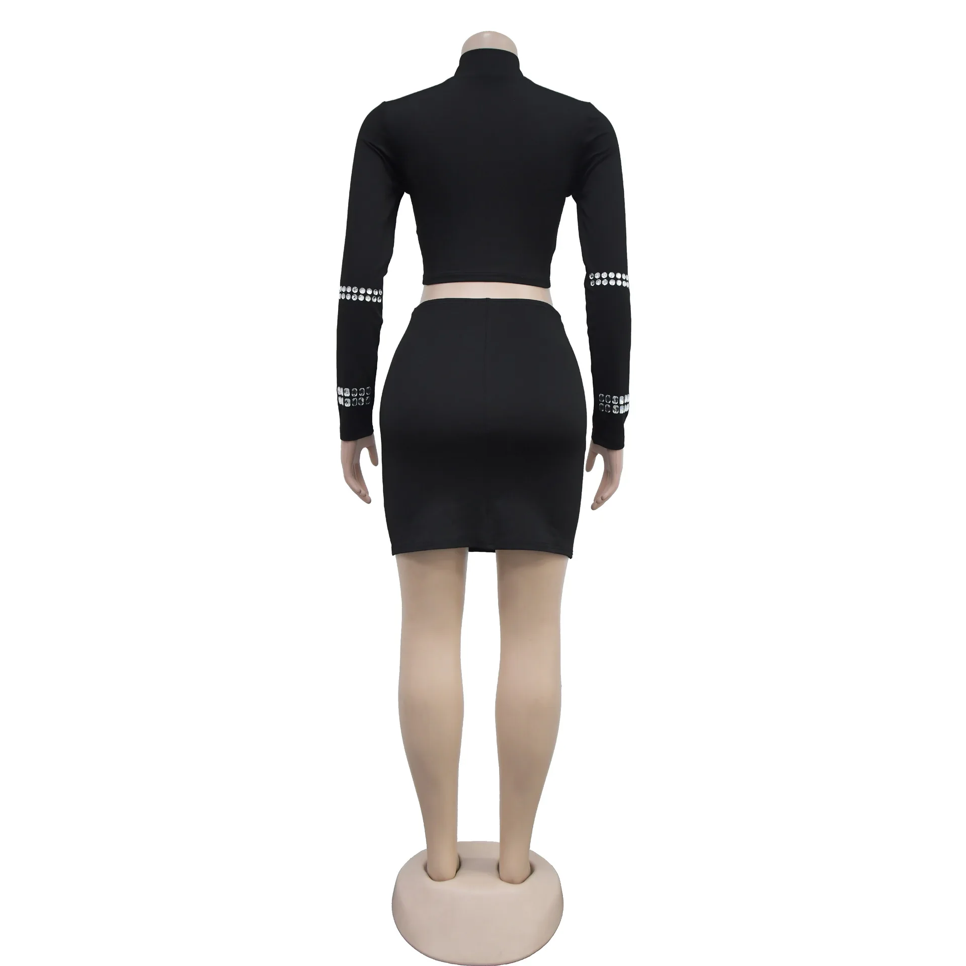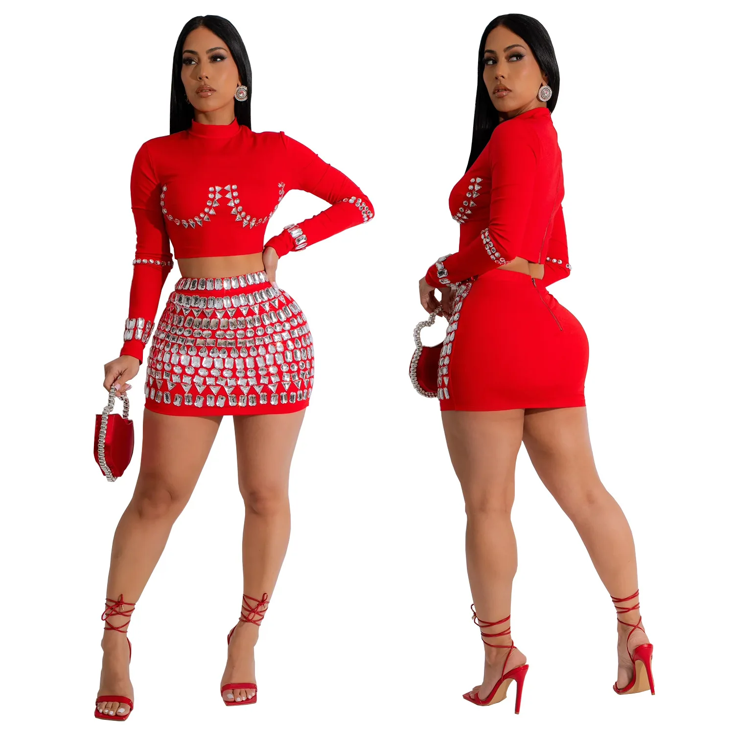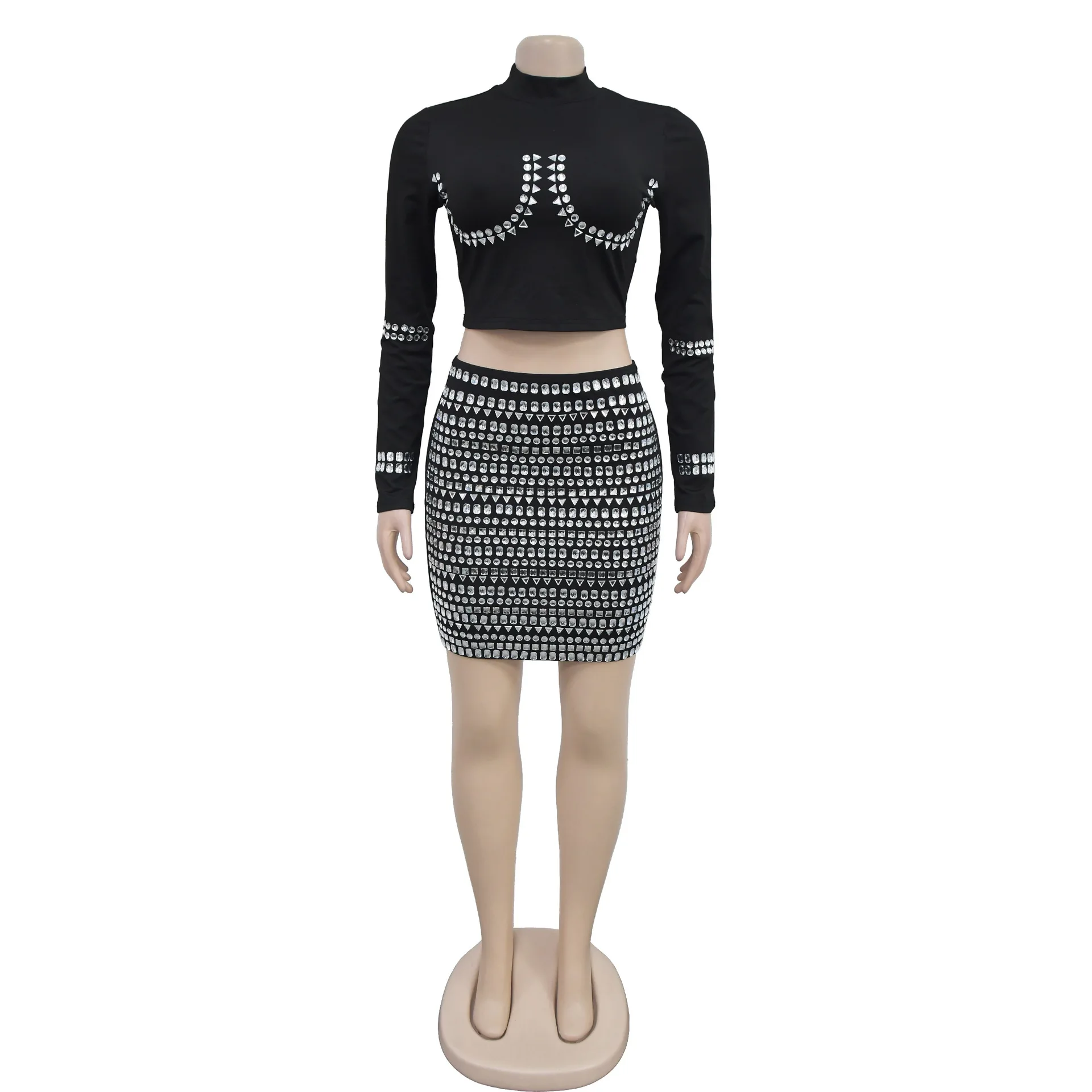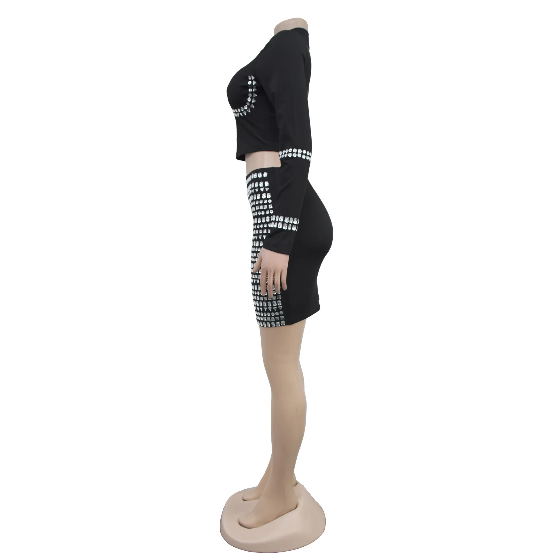 Be the first to review “European and American fashion women’s clothing long-sleeved sexy hip-wrapped short skirt hot diamond two-piece set”