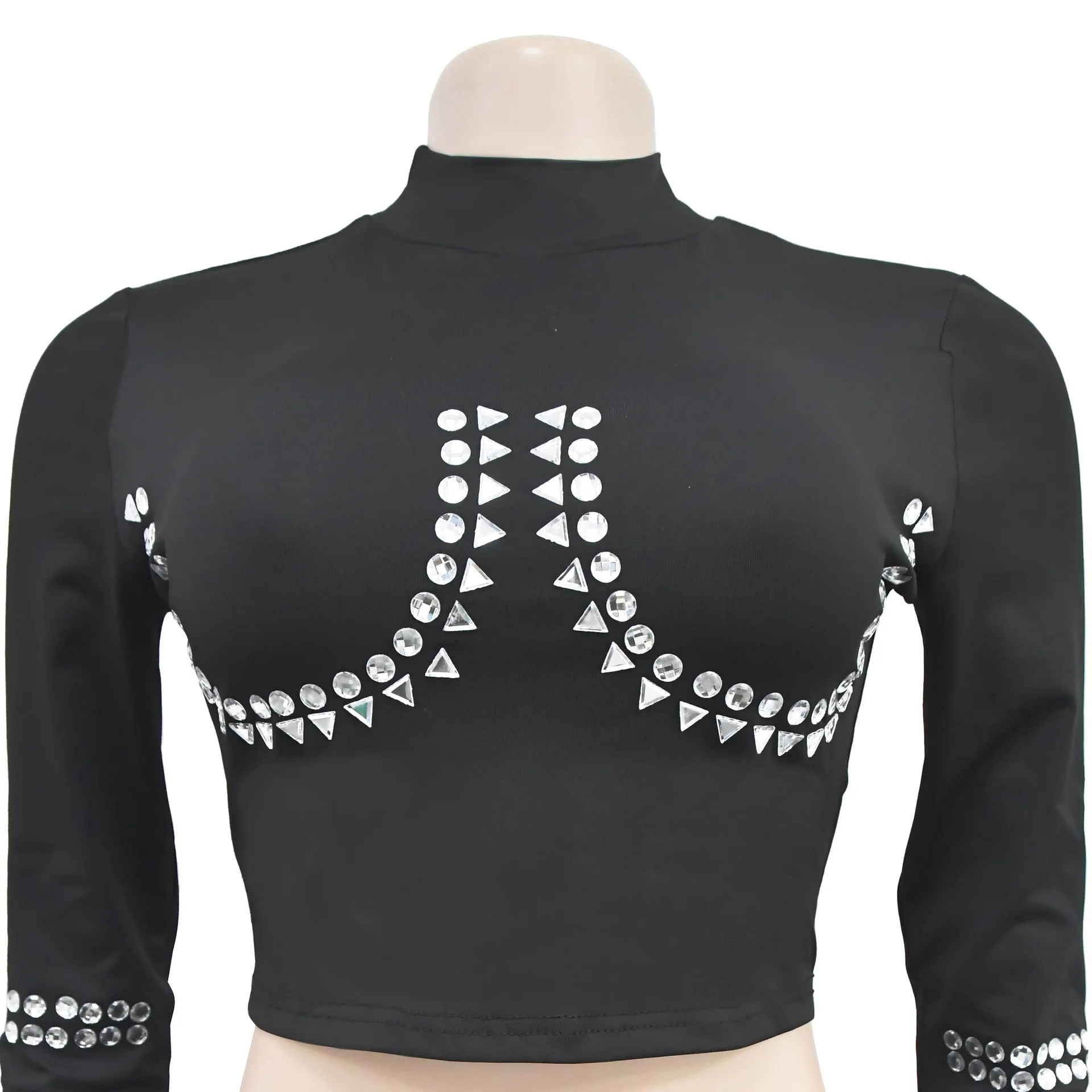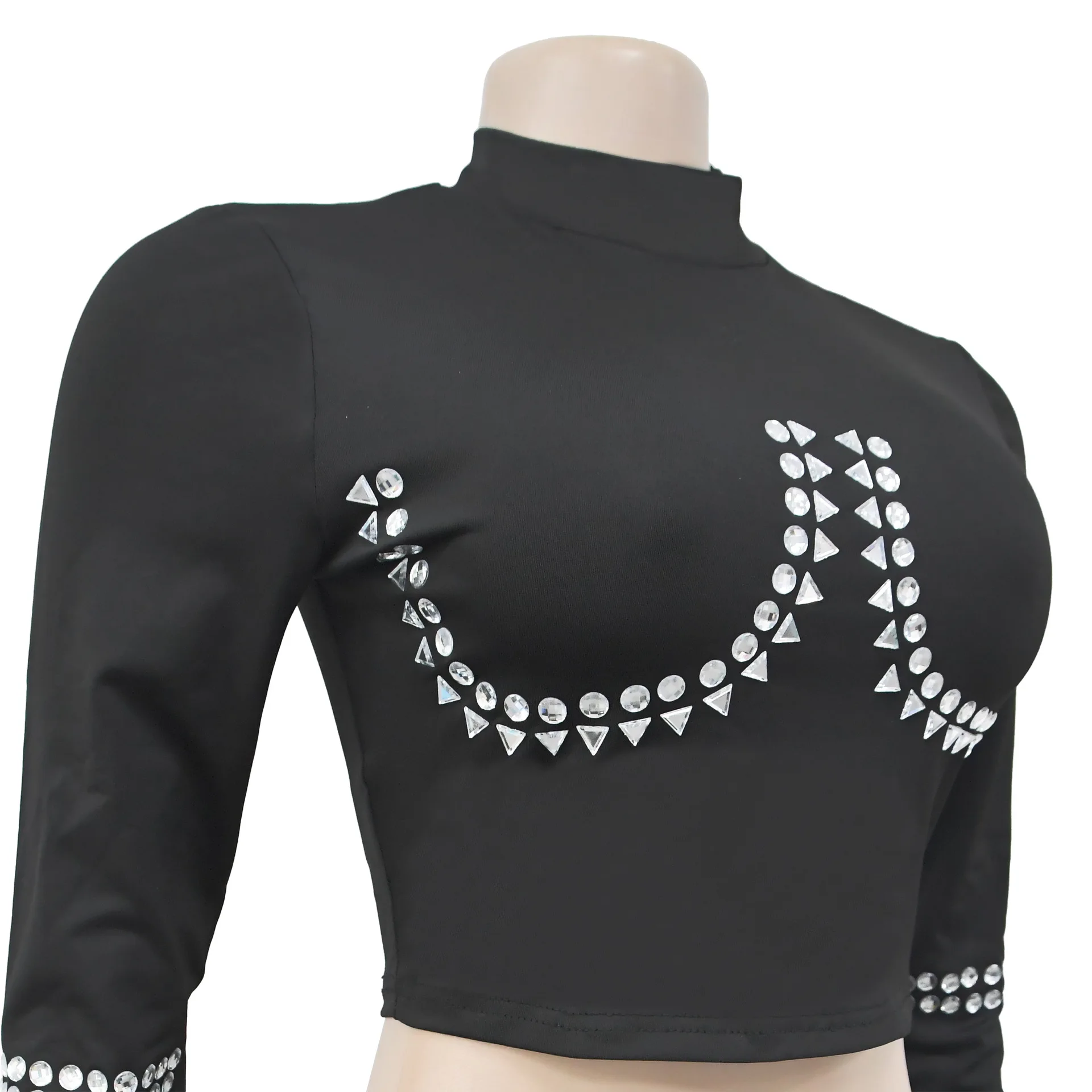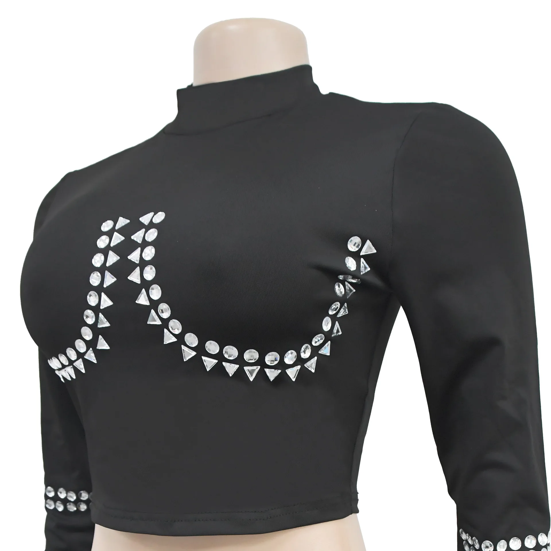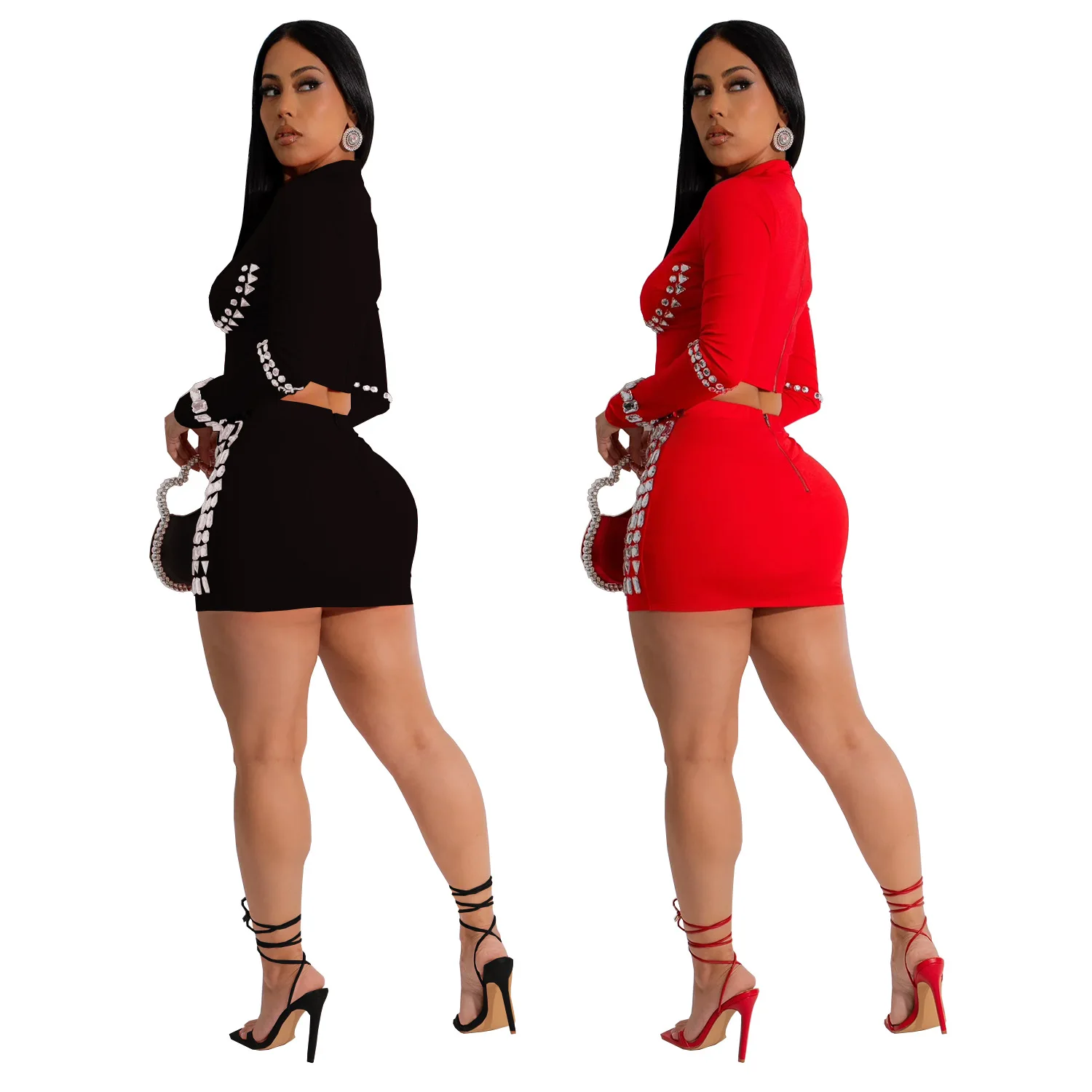Be the first to review “European and American fashion women’s clothing long-sleeved sexy hip-wrapped short skirt hot diamond two-piece set”