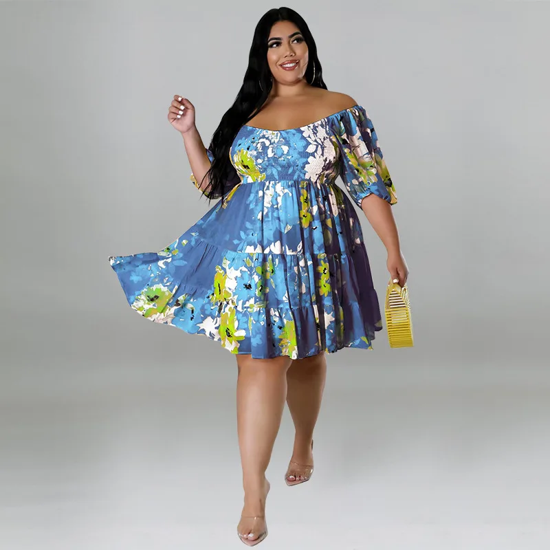 Be the first to review “European and American large-size women’s clothing summer new products sexy one-word shoulder print dress”