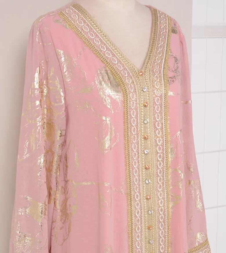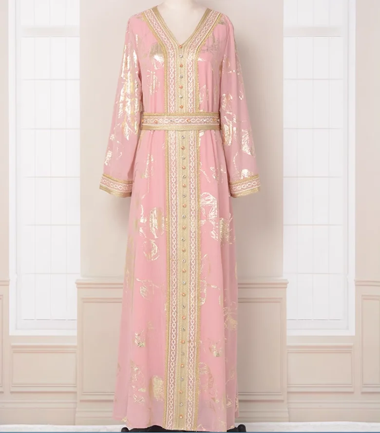Be the first to review “European and American Women’s Dress Middle Eastern Powder Hot Stamping Robe”