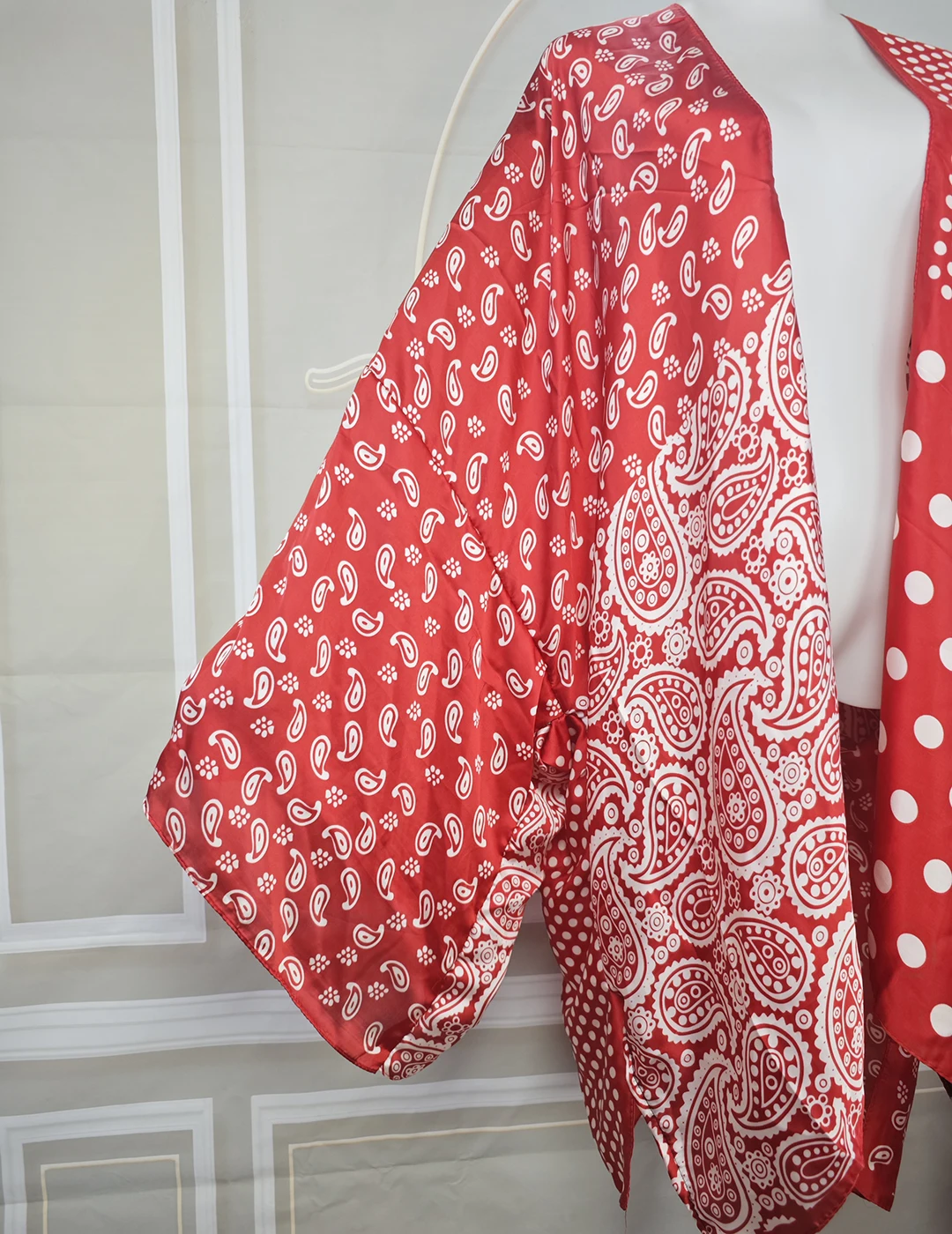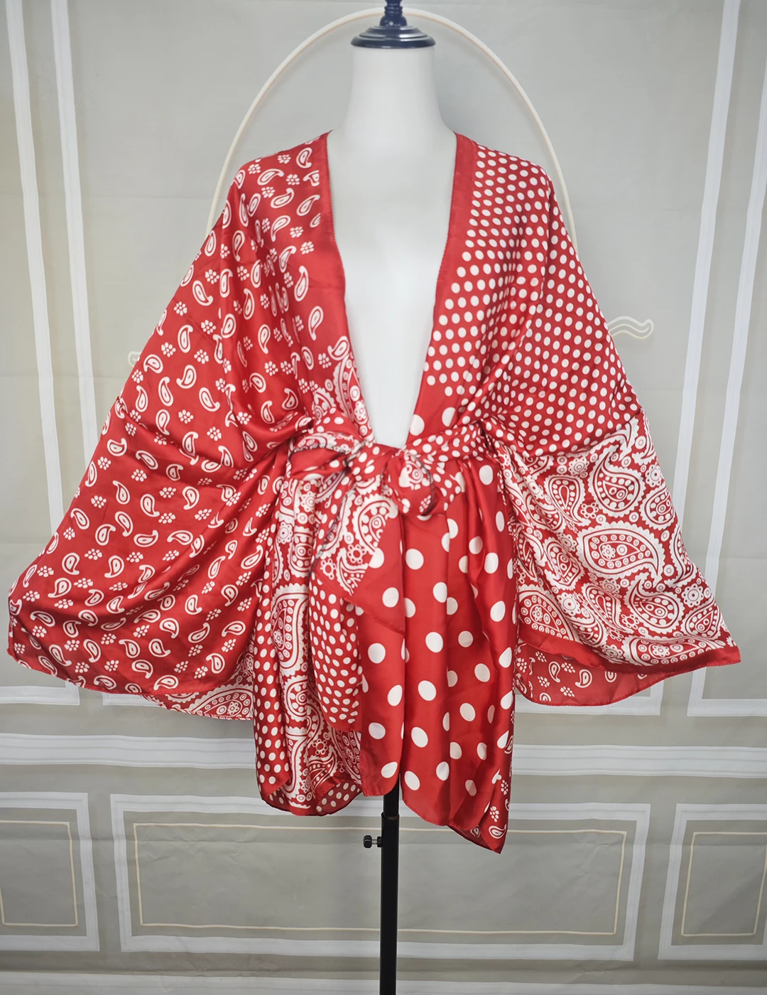 Be the first to review “European Clothing 2025 Beach Wear Short Kimonos +Sash Bohomian Sexy Lady Summer Beach Bikini Cover Up Red Silky Midi Cardigans”
