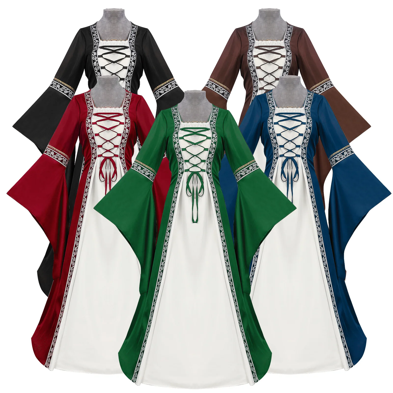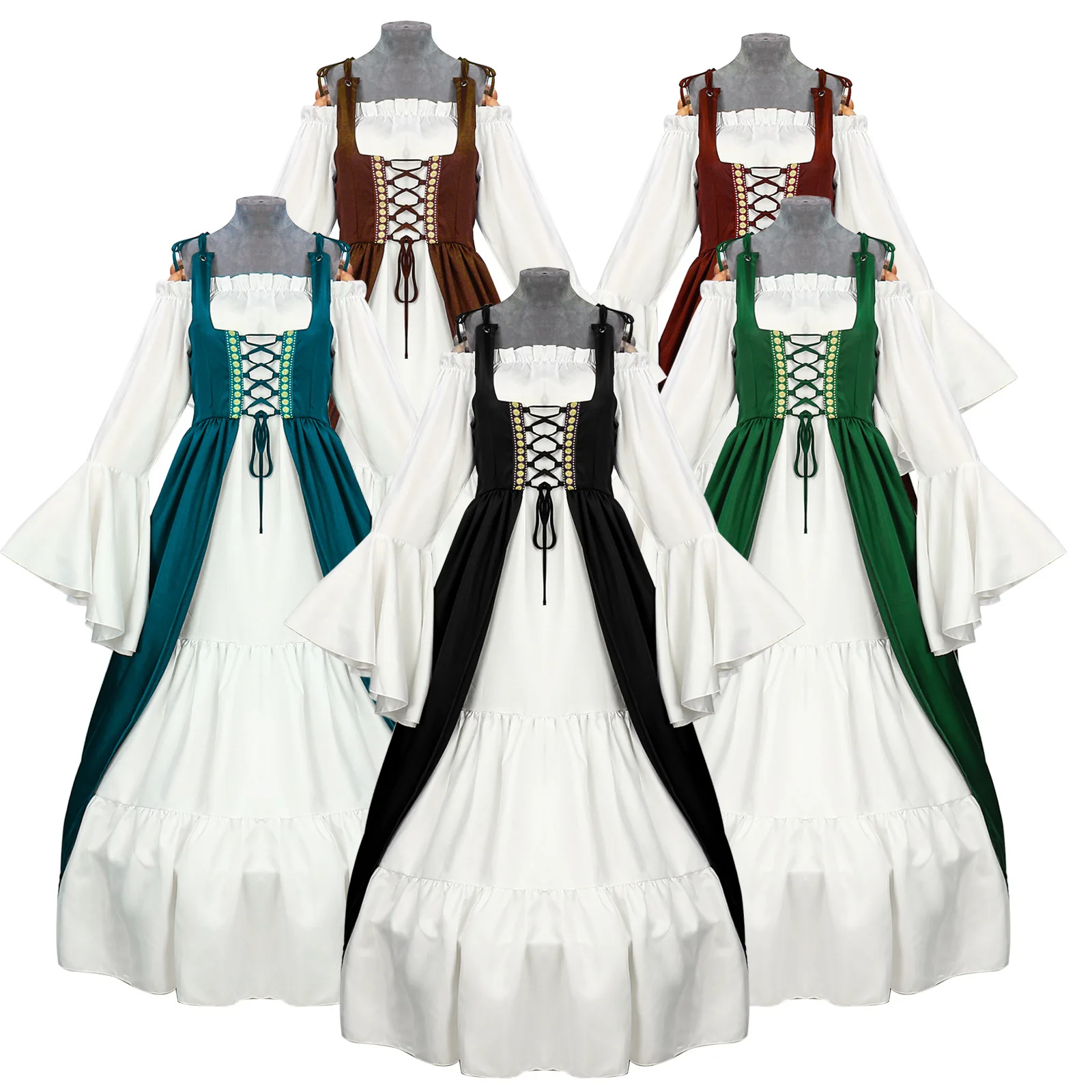 Be the first to review “European Medieval Court Retro Long-sleeved Waist Skirt Clothing One-word Collar Bat-sleeved Swinging Long Skirt Women’s Wholesal”