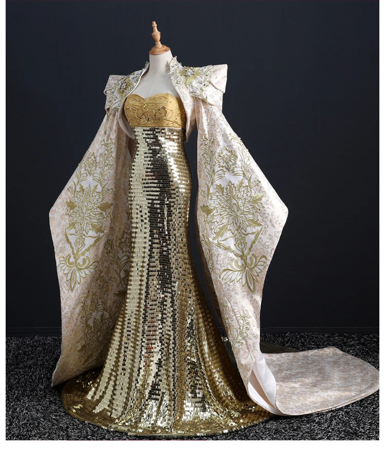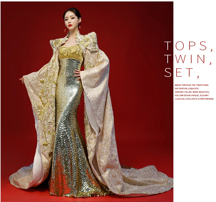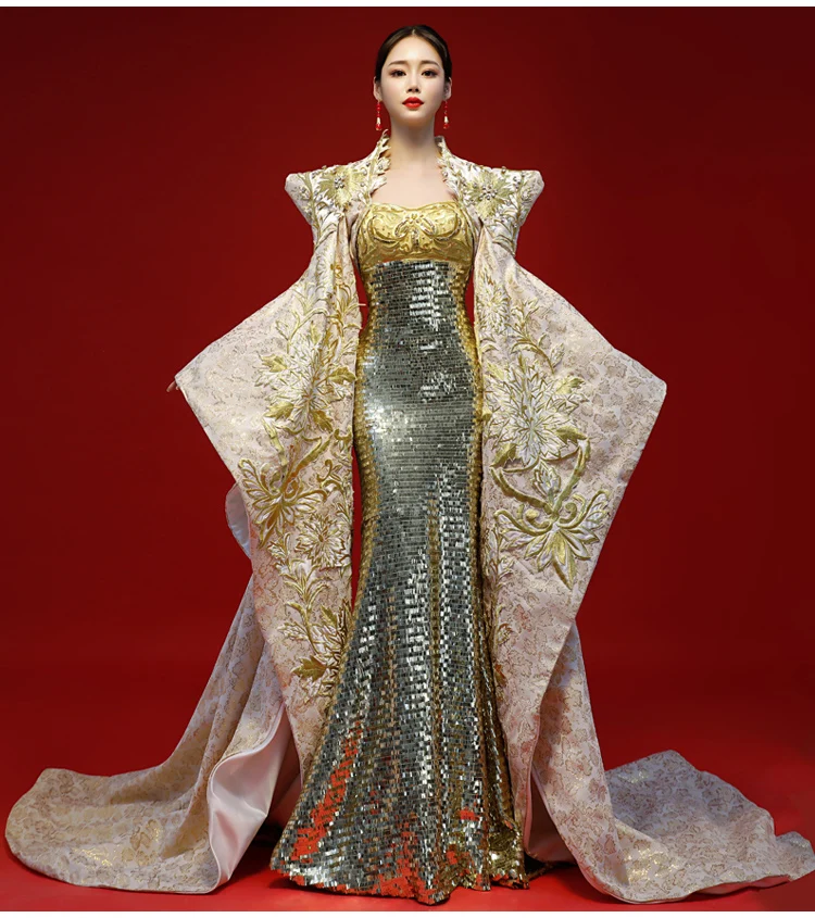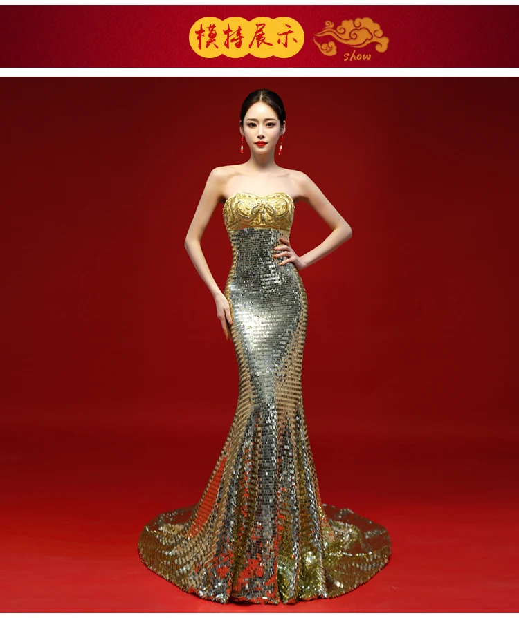Evening Dresses host Female New Sexy Exaggerated Model Walking Show Dresses Performing Long Elegant international Atmospheric Fishtail