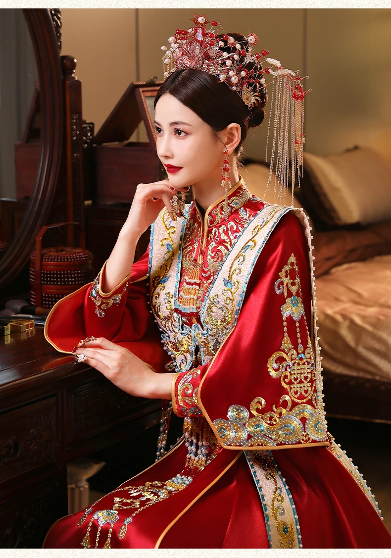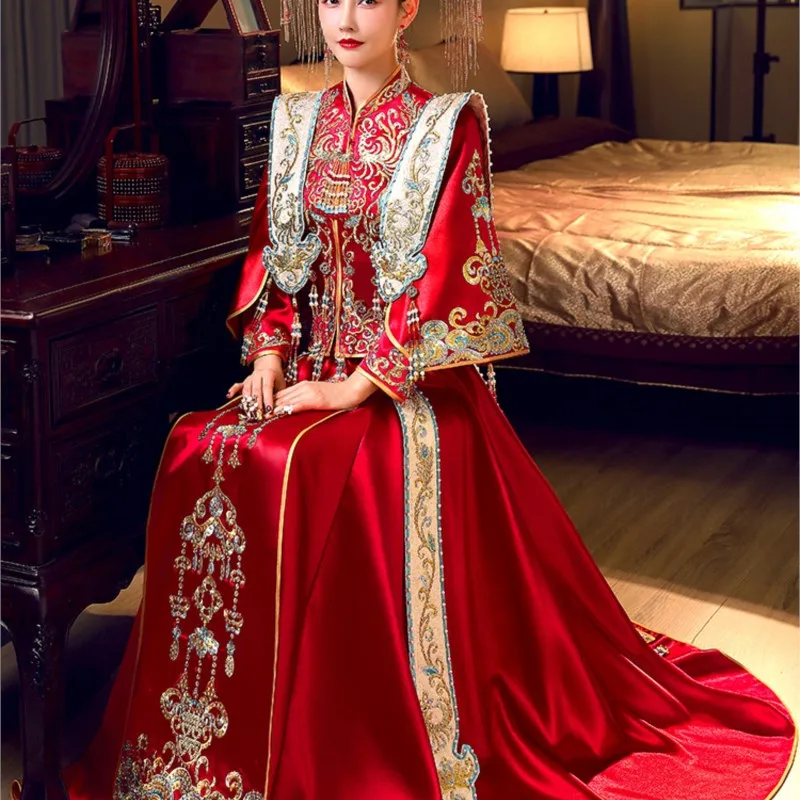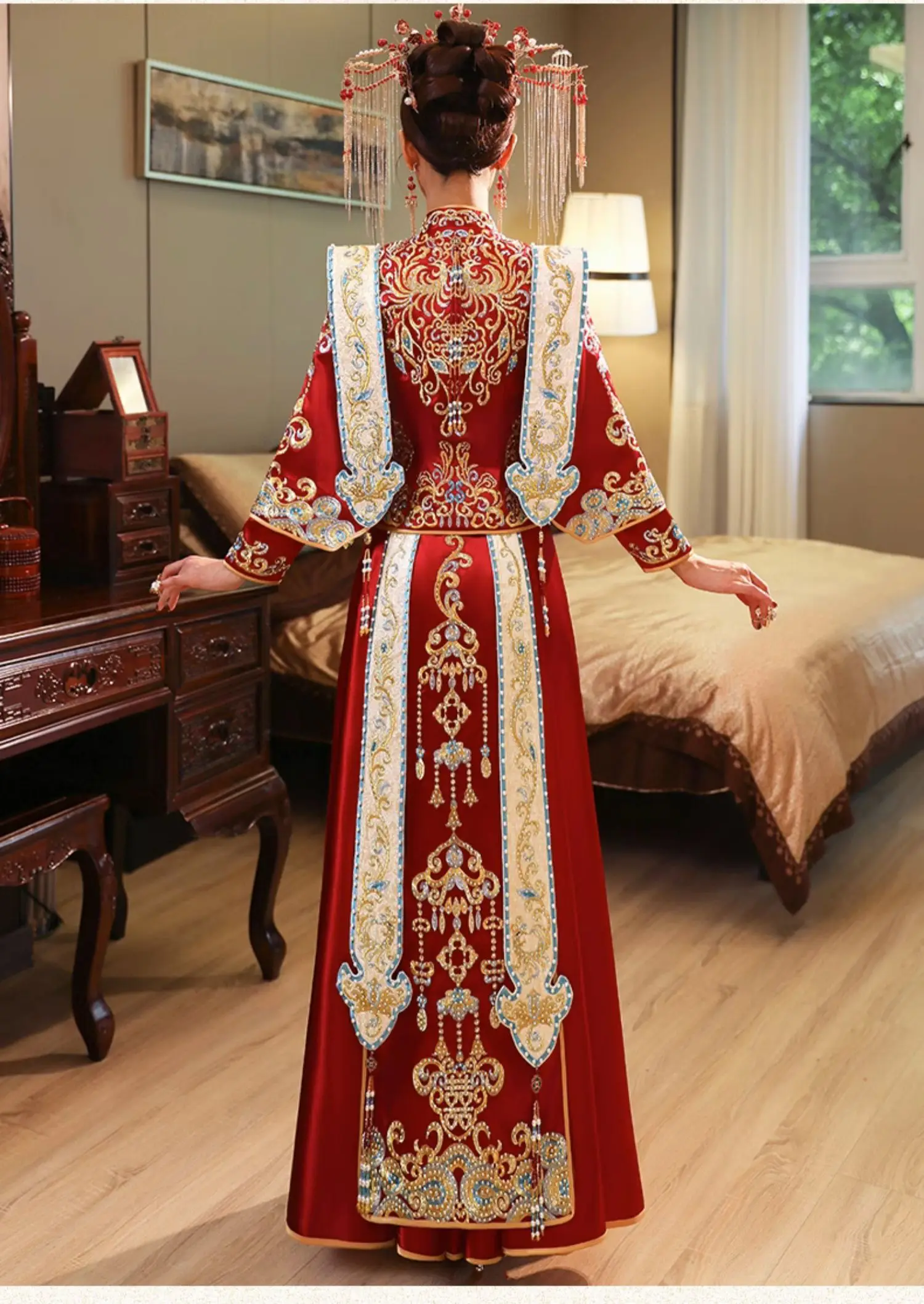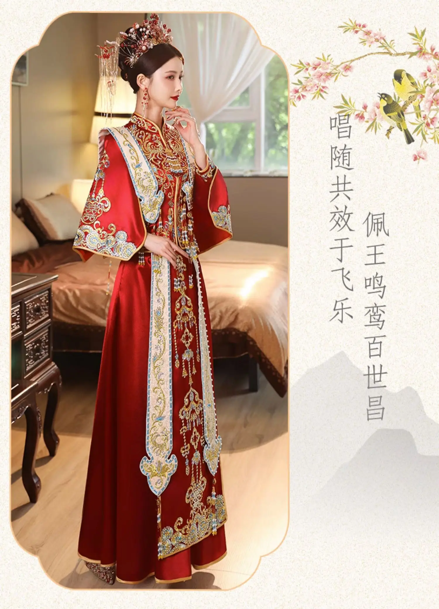 Be the first to review “New satin Hanfu wedding dress Chinese-style gown phoenix crown and red cape”