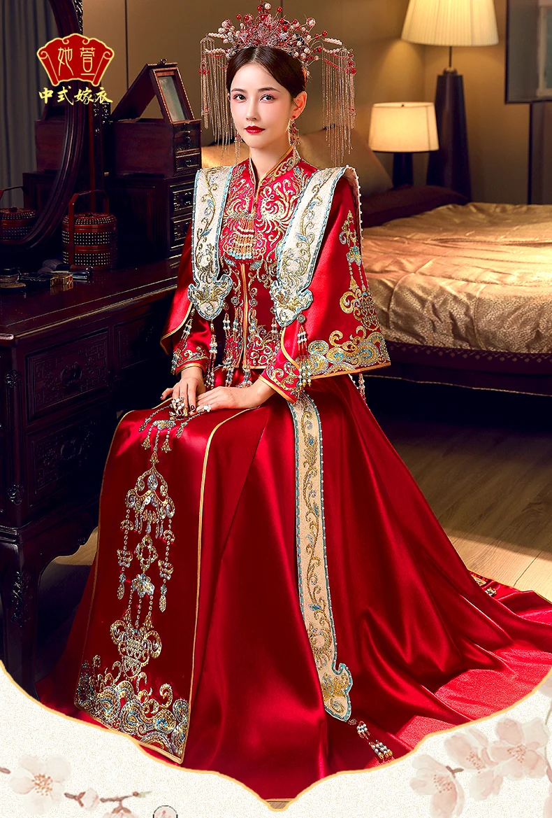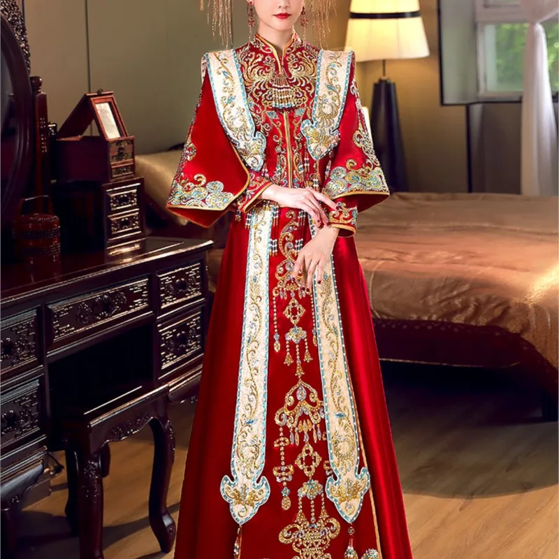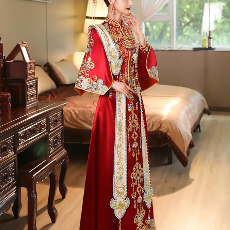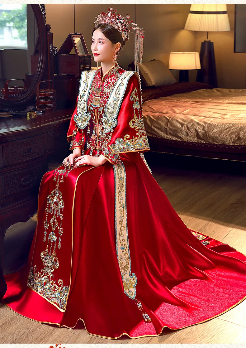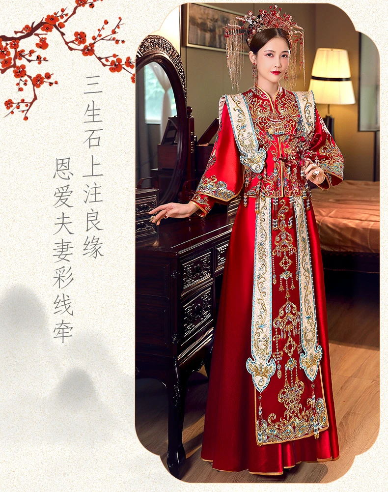 Be the first to review “New satin Hanfu wedding dress Chinese-style gown phoenix crown and red cape”