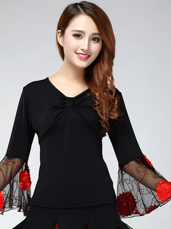 Be the first to review “Pagoda Sleeve Long Sleeve Dance Tops For Women Lace V-Neck Latin Ballroom Dancewear Costume”