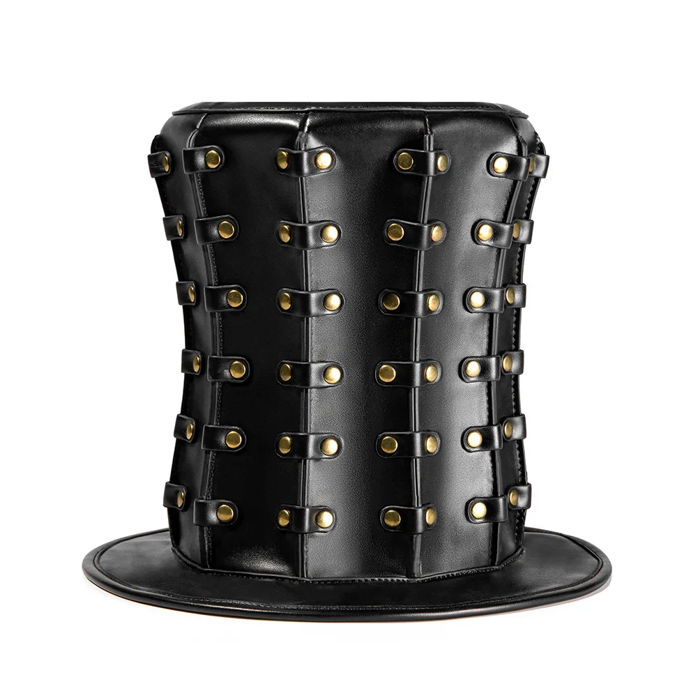 Item:Punk Unisex PU Top Hat with Studs Steampunk Gothic Victorian Halloween Cosplay Anime Medieval Costume Accessory Formal Banquet