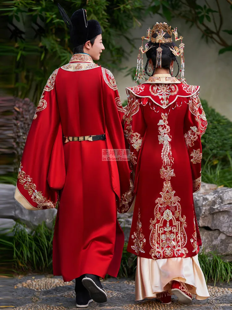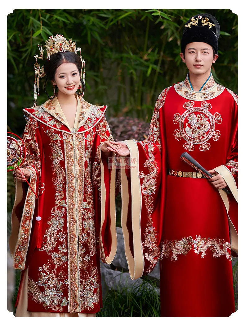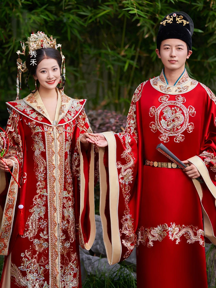 Song Ming Dynasty Hanfu Wedding Dress Original Xiuhe Embroidery Phoenix Gown Dragon Robe Ancient China Wedding Couple Clothing