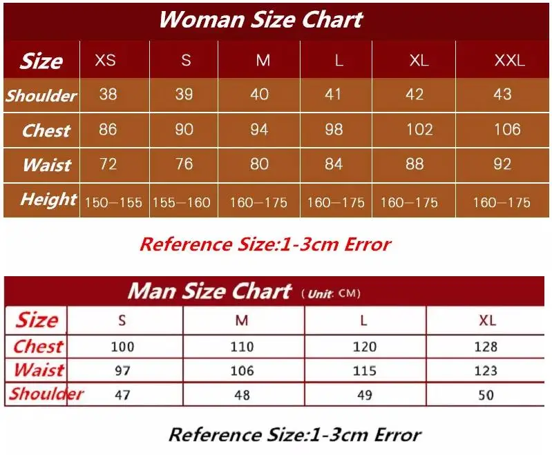 Size chart(For reference)Unit cm (1cm=0.39in) Or (2.54cm=1"inch)