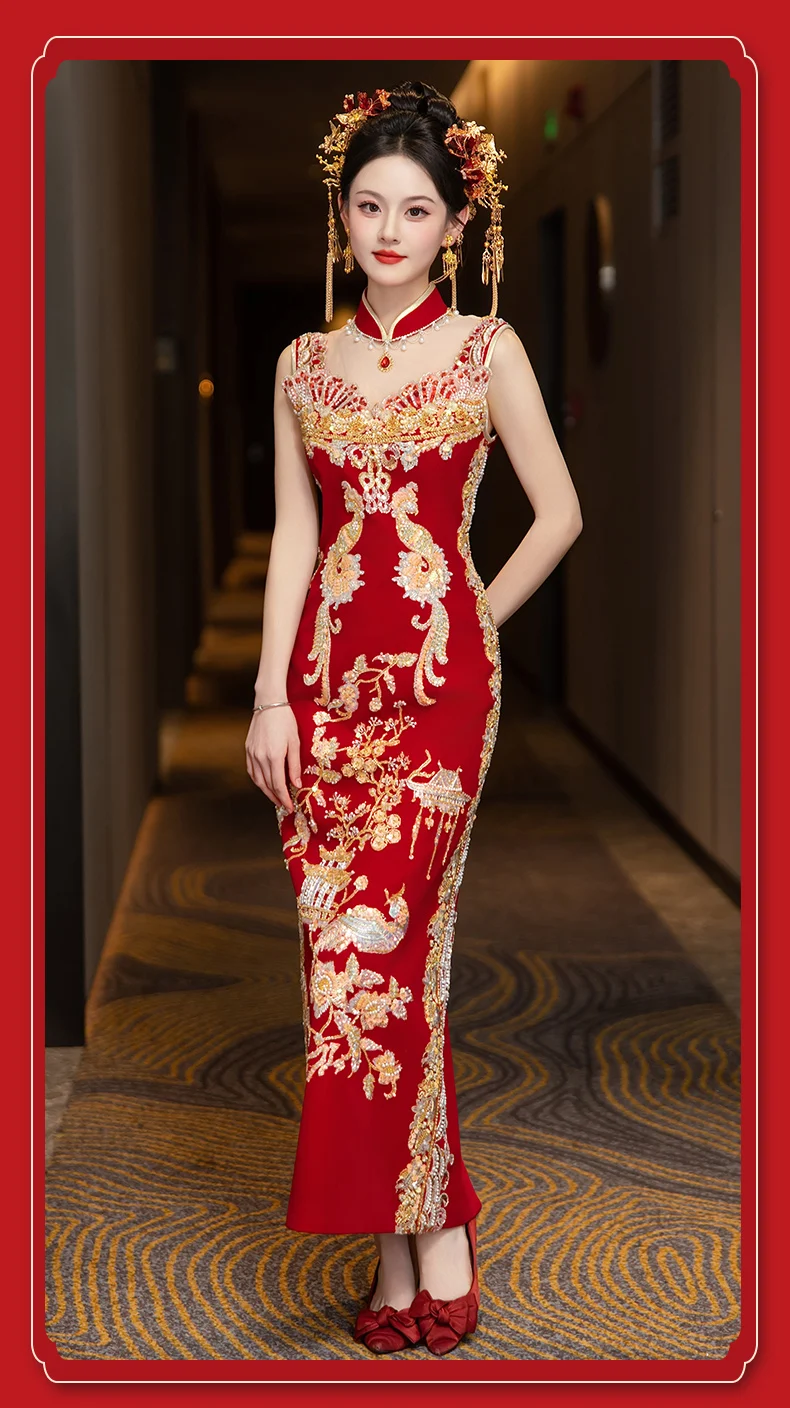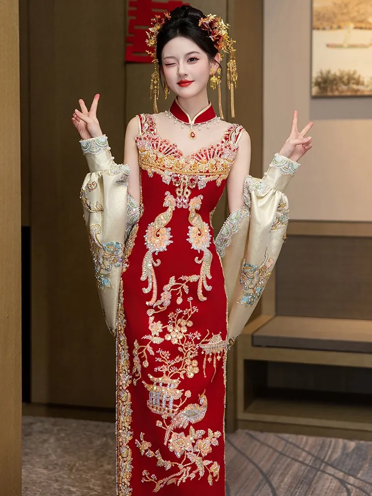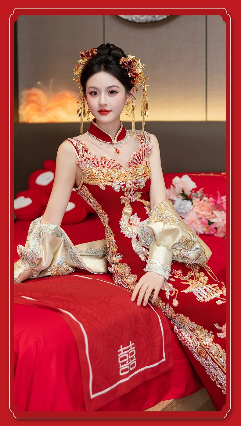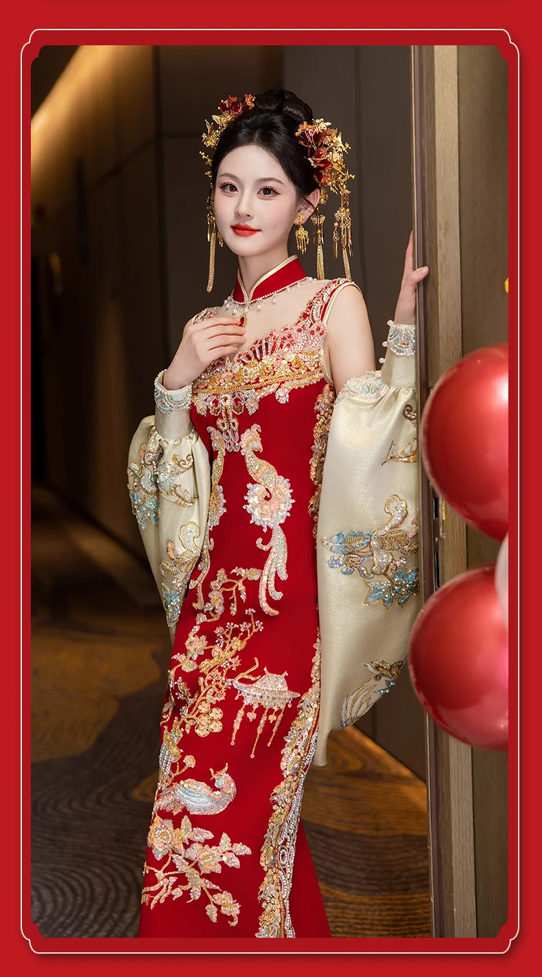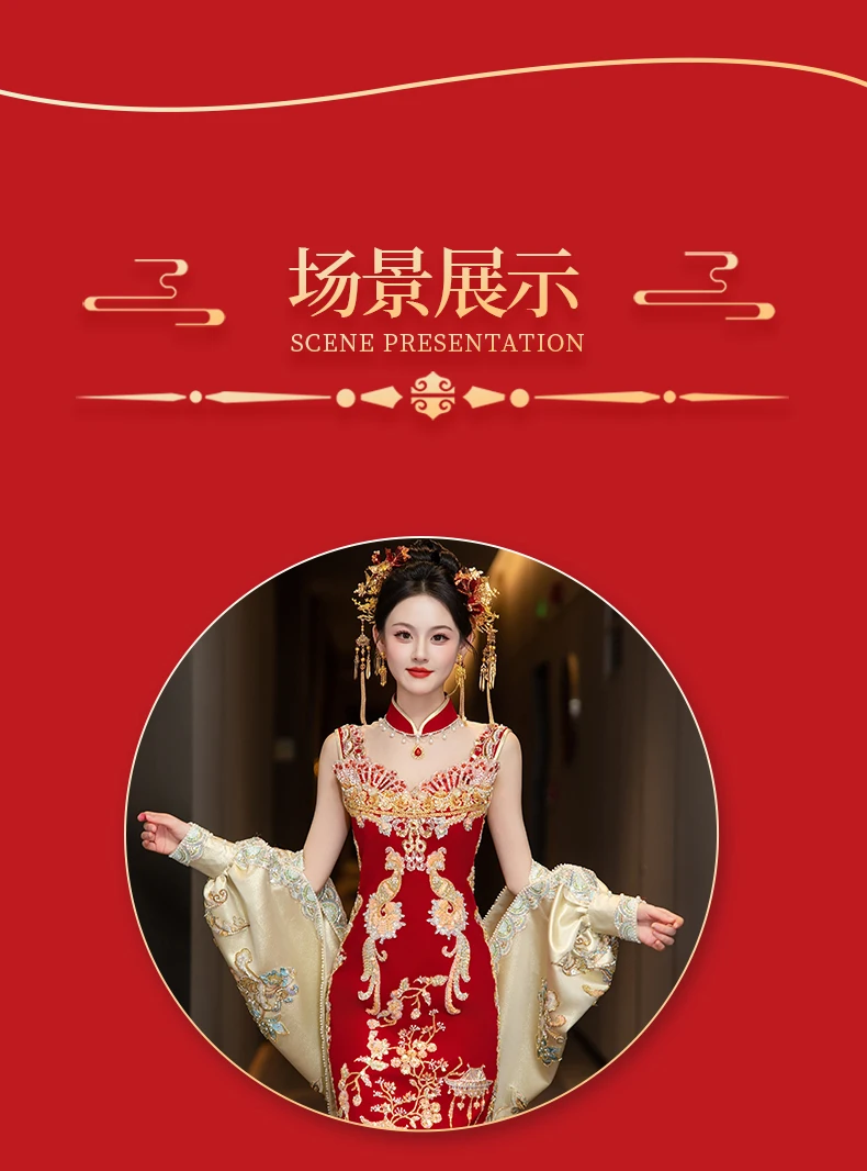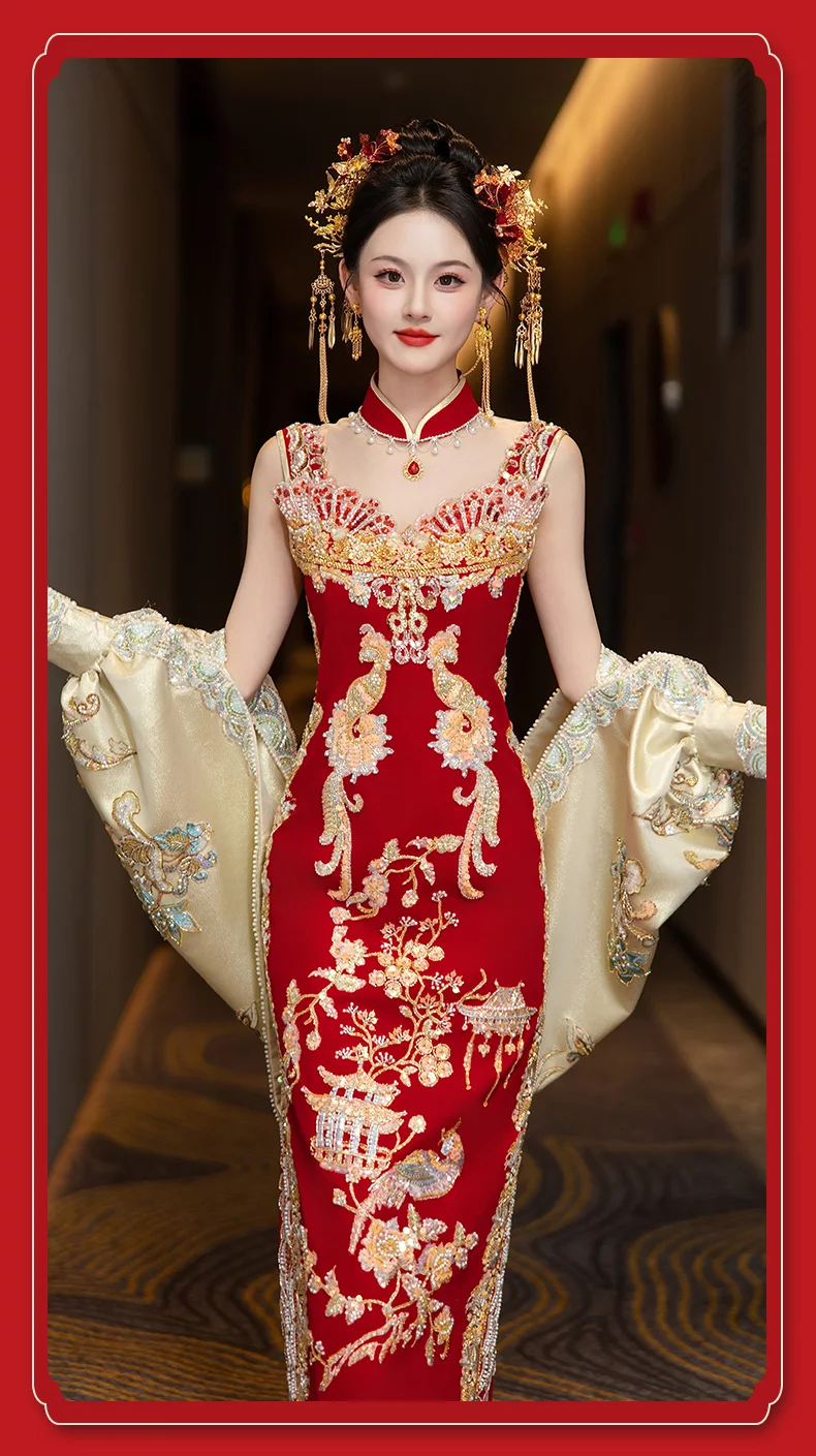 Be the first to review “The new Chinese-style cheongsam featuring a phoenix crown and red wedding dress for toasting”