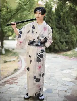 Japanese Standard Kimono formal Samurai Asian traditional bathrobe Black Man Japanese Kimono Floweral Vintage Evening Dress