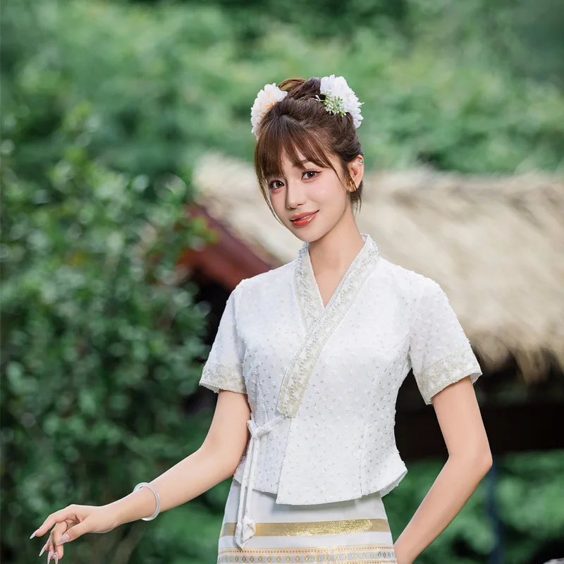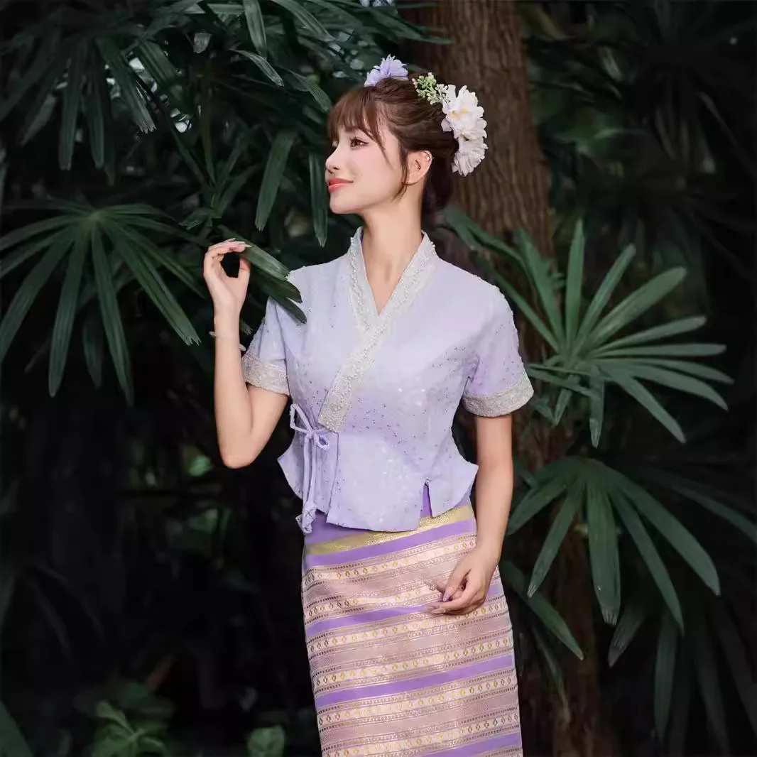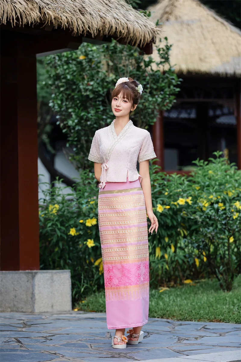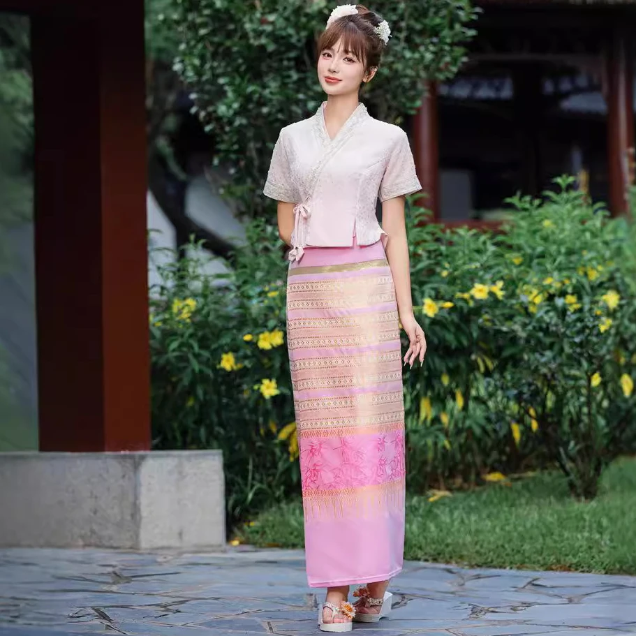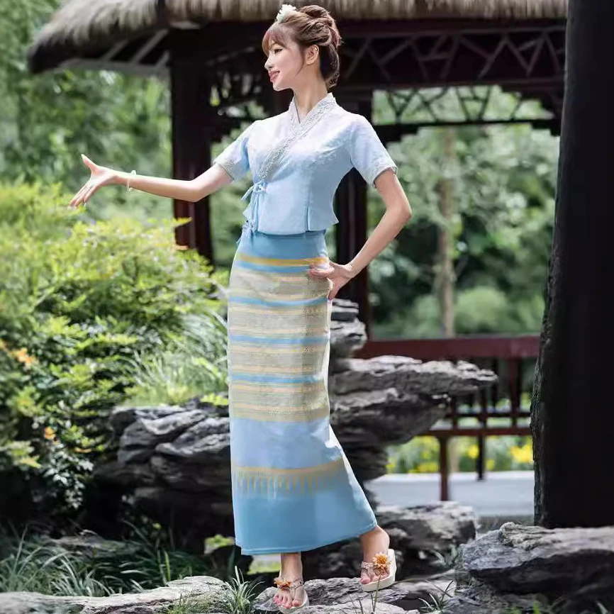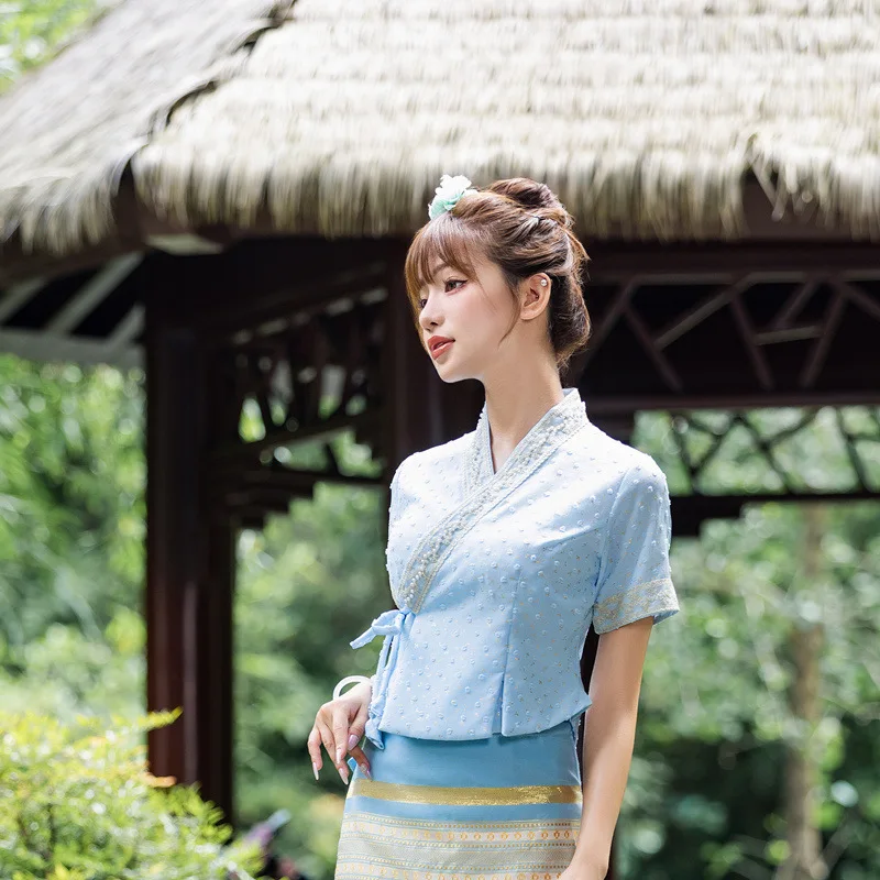 Be the first to review “Vintage Women’s 2piece Set Thailand Traditional Clothing Chinese Tea Clothes Embroidered Short-sleeved Top Thai Dress Set 1207-3”
