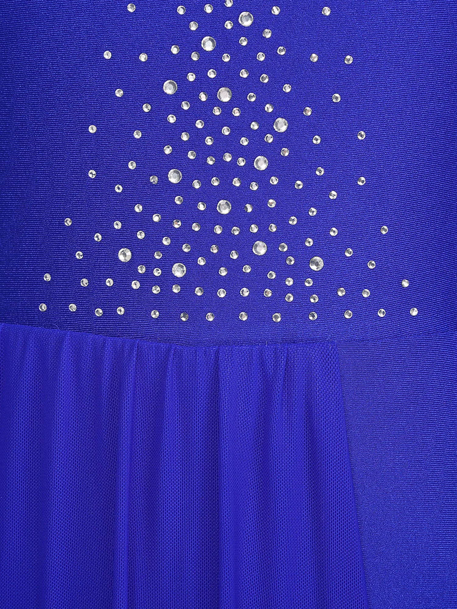 Sheer mesh patchwork, decorated with sparkly rhinestone, side split design.